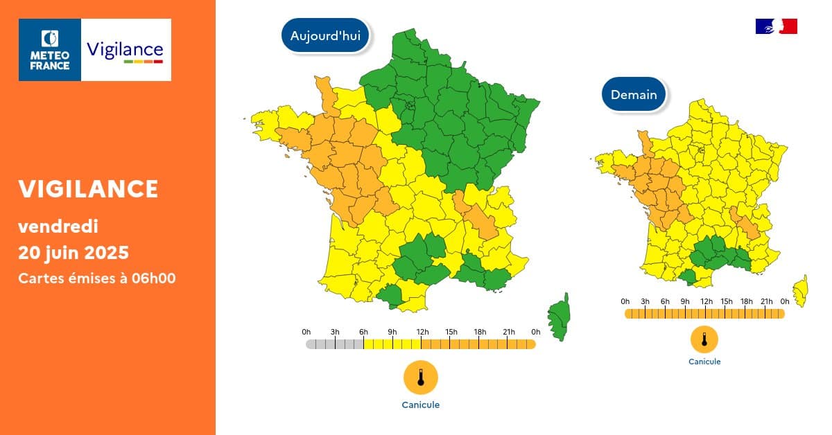 Carte de vigilance du 20 juin 2025 à 06h – Météo-France