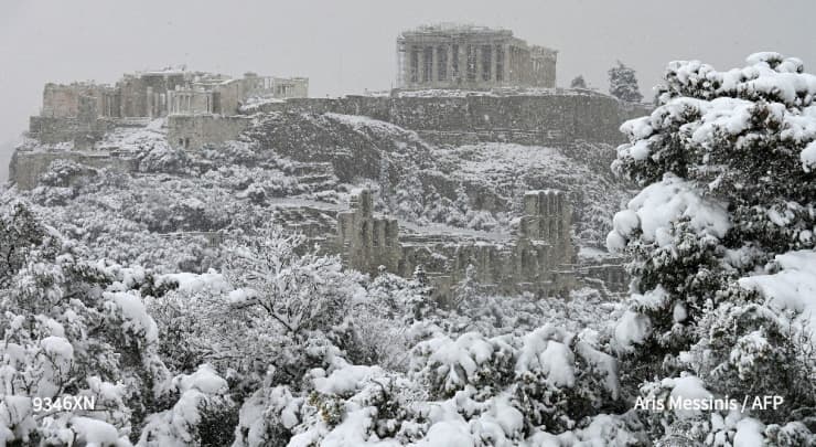 L'Acropole d'Athènes sous la neige ce mardi 16 février 2021 - photo AFP