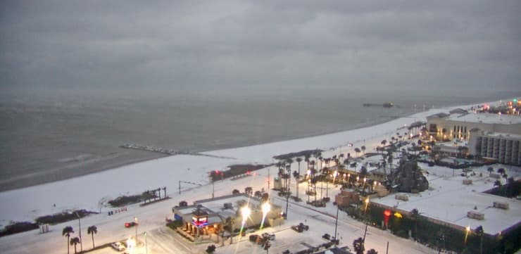 Chute de neige sur les plages de Galveston au Texas ce lundi 15 février 2021 - via weatherbug