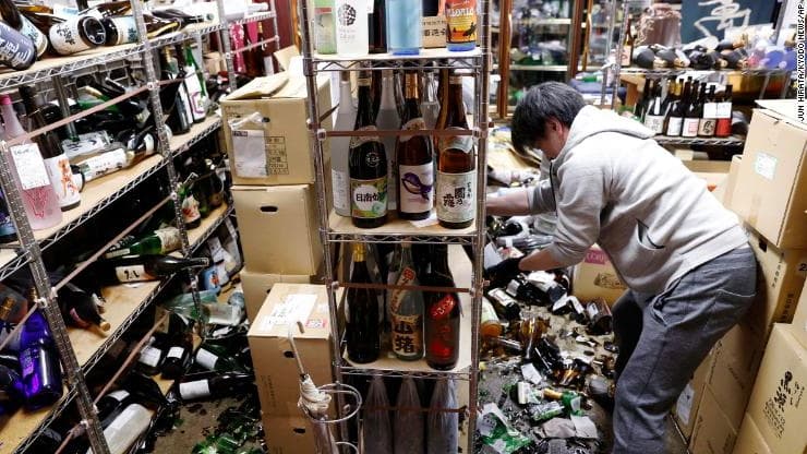 Dégâts liés à un fort tremblement de terre à Tokyo (Japan) le samedi 13 février 2021 - via Jun Hiratakyodo
