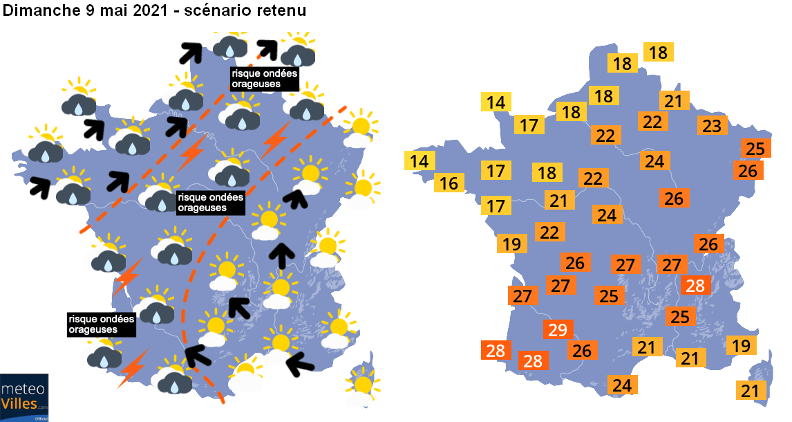 Prévisions retenues pour le dimanche 9 mai 2021 - Météo-Villes