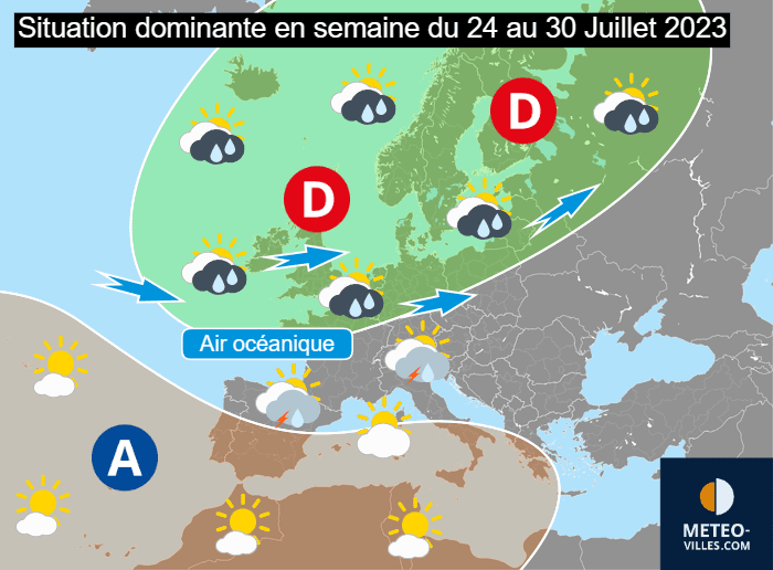 Situation dominante prévue en semaine du lundi 24 au dimanche 30 juillet 2023 - Météo Villes