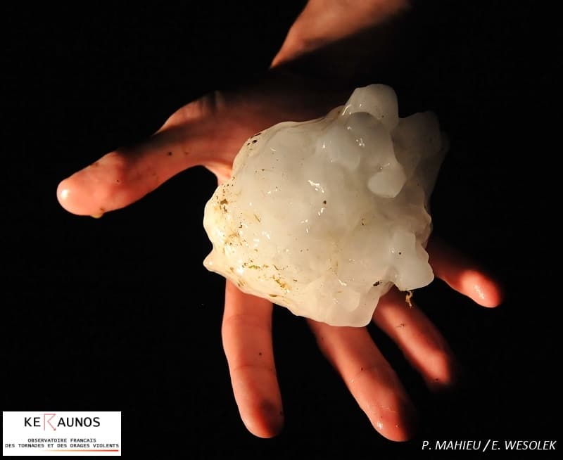 Seulement trois jours plus tard, une offensive orageuse particulièrement virulente était survenue du sud-ouest aux régions du nord, occasionnant la formation de nombreuses supercellules. C'est l'une d'elles qui a provoqué de la grêle géante dans le sud du département du Nord. Des grêlons allant jusqu'à 12 centimètres de diamètre avaient été observés sur la commune de Raillencourt-Sainte-Olle, du jamais vu en France !