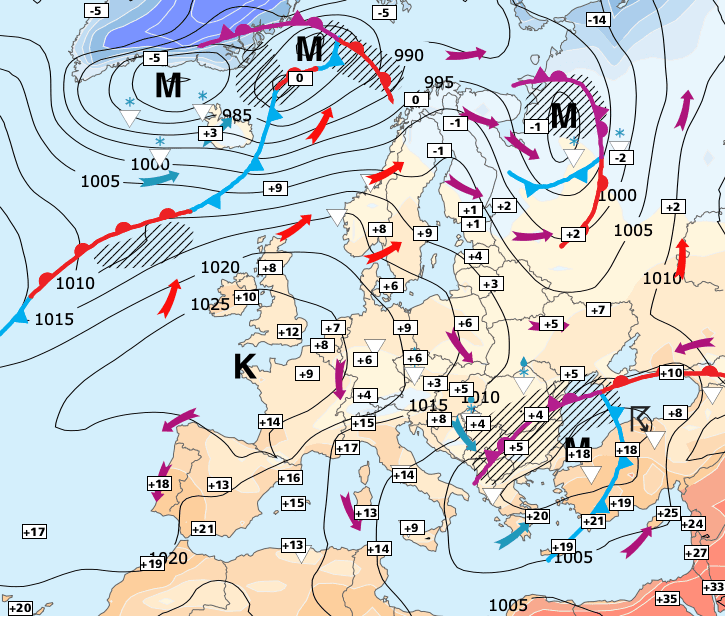 + Lundi, il était centré sur la Bretagne, véhiculant de l’humidité et des nuages en provenance de la Manche au nord d’une ligne Saint-Malo - Genève >>>.