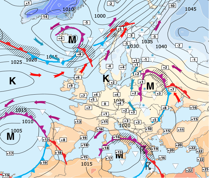 Noms des dépressions et anticyclones prévus pour lundi 30 novembre 2020 à midi (Berlin)