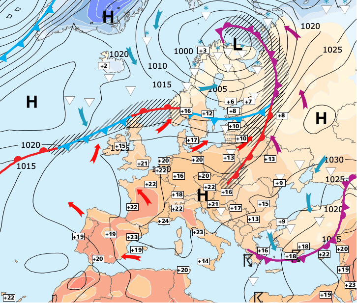 + Comme il s’agira d’air froid sec, le soleil restera généreux sur les régions du Nord (excepté près de la Manche, où l’influence sera plus maritime).