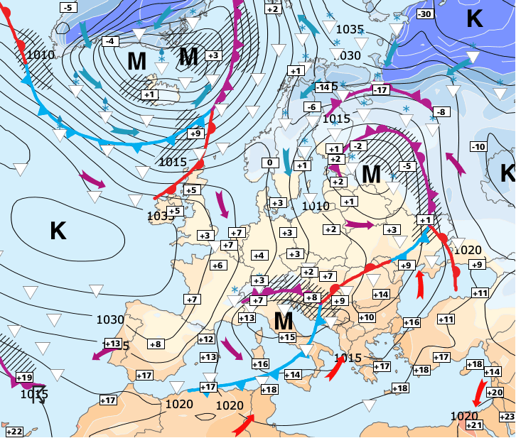 + Les deux semaines à venir devraient restera très agitées, car marquée par l'omniprésence de cette vaste zone dépressionnaire qui concernera d'ailleurs presque toute l’Europe avec un froid de saison (mais absolument pas remarquable) et des précipitations très fréquentes.
