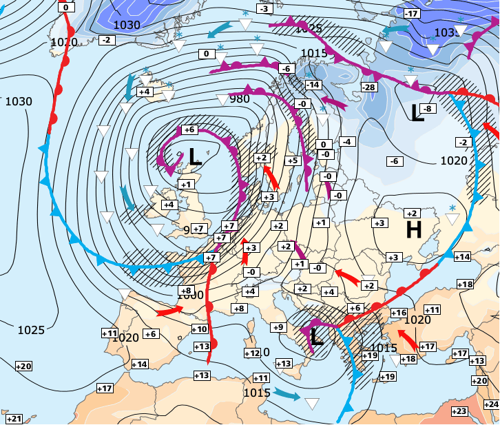 Ensuite, la dépression s’en ira vers le Danemark mais elle nous influencera toujours et aucun anticyclone ne s’installera sur l'Europe occidentale.