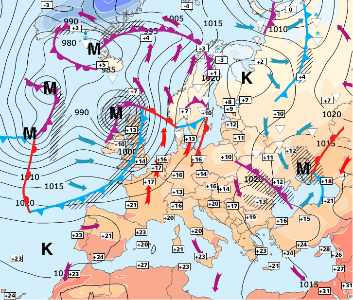 + Puis l’air frais venu d'Islande envahira le pays à partir de mardi.