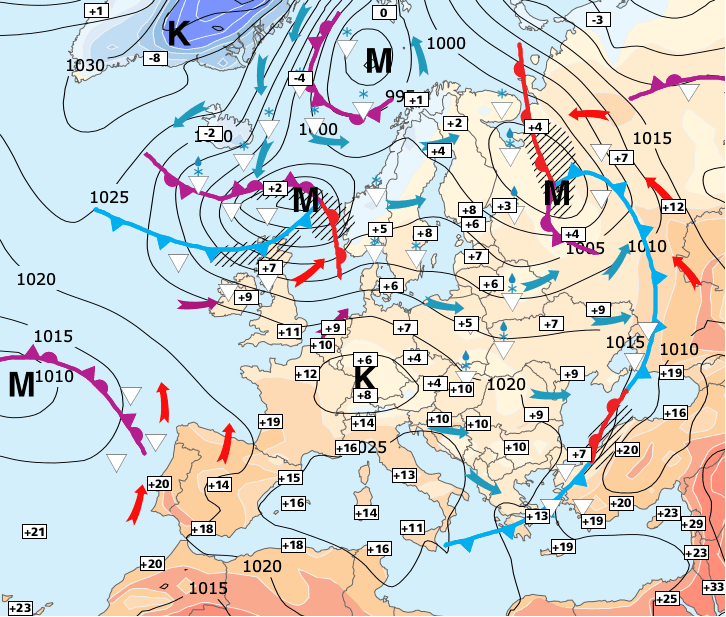 + Ce week-end, la France sera située au milieu d'un conflit entre l'air chaud et instable méditerranéen et une nouvelle descente froide d’Europe du Nord...